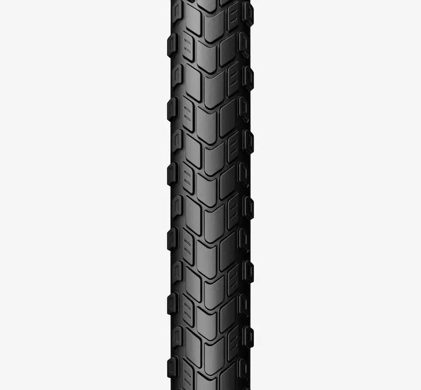 A mintázat a Pirelli MT60™ RS motorkerékpár-abroncs ihletésére készült. A középső futófelület alacsonyabb mintázati elemei gördülékeny haladást biztosítanak aszfalton, míg az oldalsó, magasabb bütykök stabil tapadást és kontrollt nyújtanak könnyű terepen és kavicsos szakaszokon.