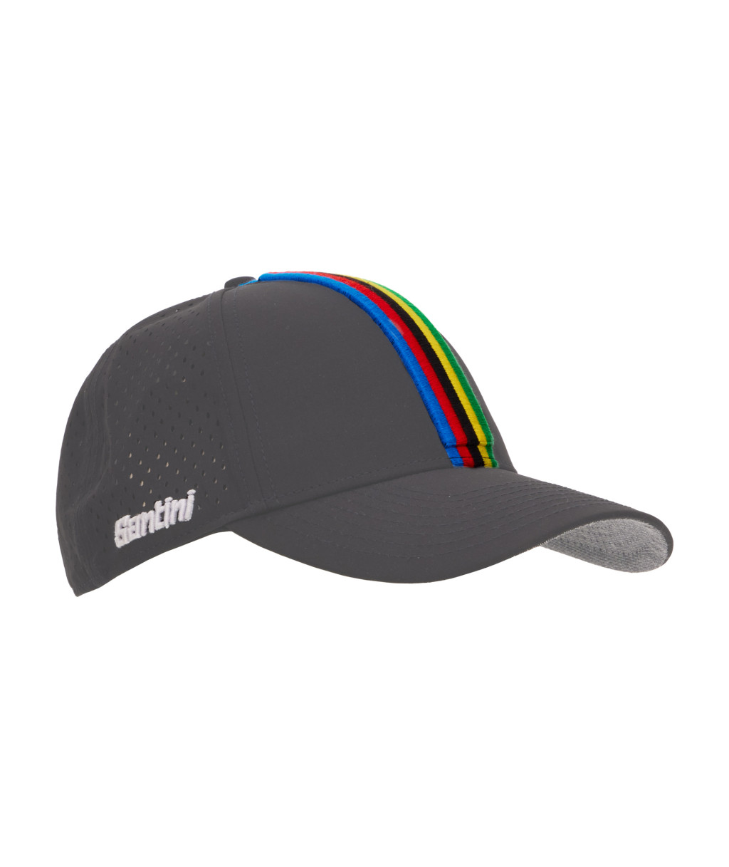 Az UCI World Champion baseball sapka sportos és stílusos kiegészítő, amely tökéletes választás a hétköznapi viselethez. Ívelt sildes kialakítása kényelmes megjelenést biztosít, miközben az elülső részen hímzett UCI World Championships Rainbow Stripes dizájn és az oldalsó Santini x UCI logó különleges, prémium hatást ad a sapkának.